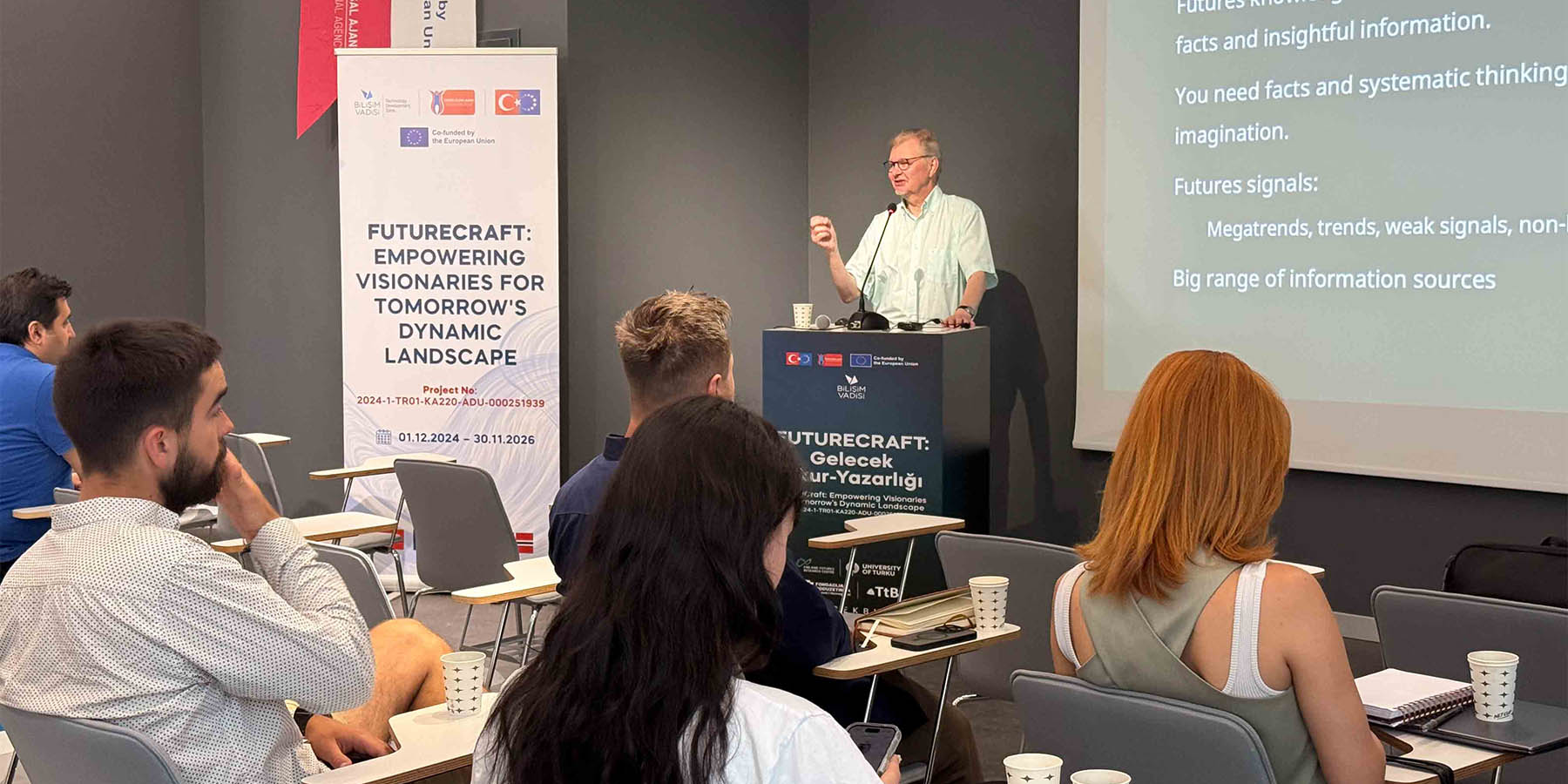 2024-1-TR01-KA220-ADU-000251939 FutureCraft: Empowering Visionaries for Tomorrow’s Dynamic Landscape – Gelecek Okuryazarlığı projesi kapsamında Bosna Hersek, Norveç ve Finlandiya’dan gelen katılımcılar İstanbul Sabiha Gökçen Havalimanı’na başarılı bir şekilde ulaştı ve kalacakları yerlere yerleşti. Kendilerine etkinliğin ilk günü için planlanan faaliyetlerle ilgili kısaca bilgi verildi.