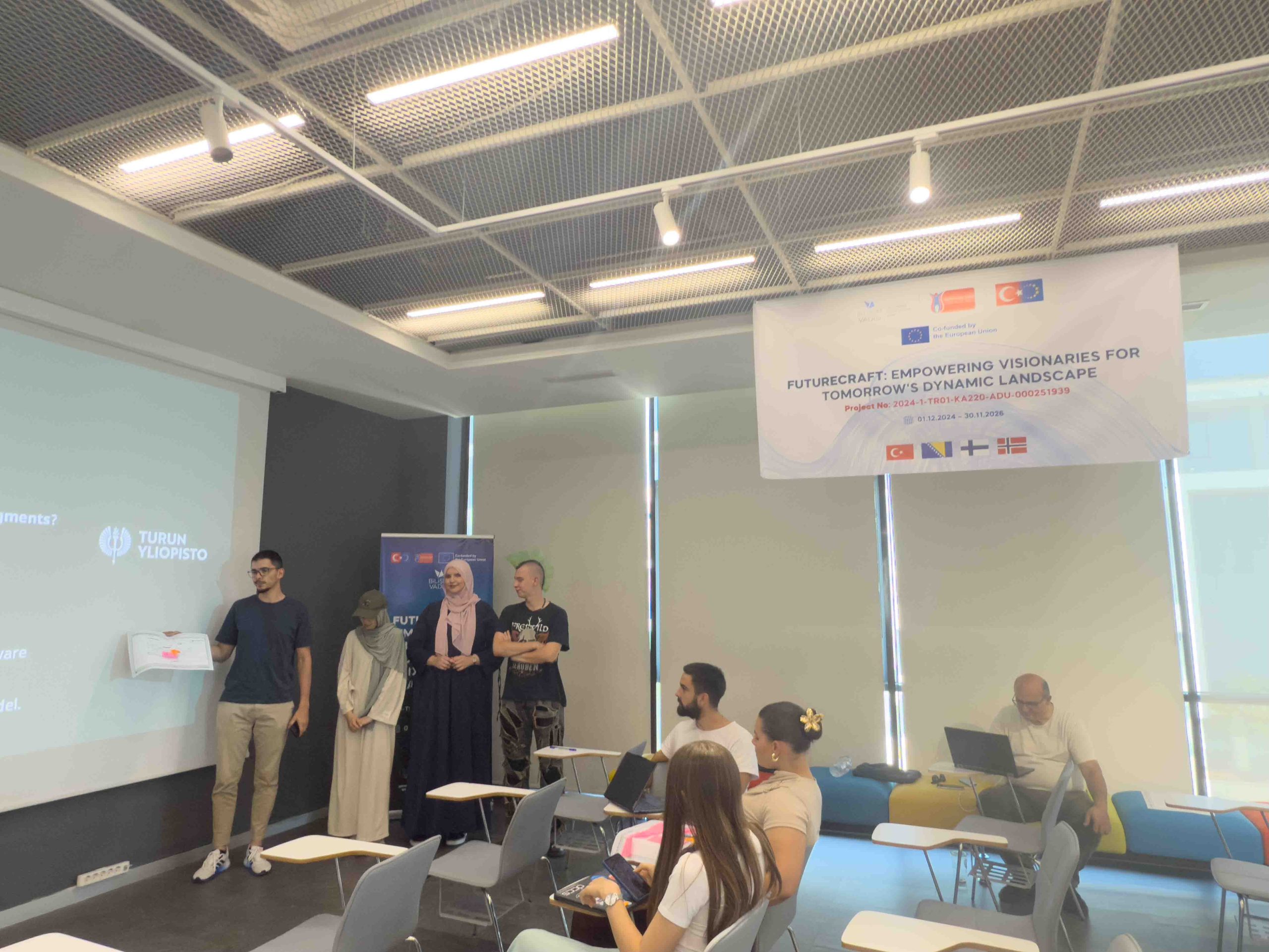 2024-1-TR01-KA220-ADU-000251939 FutureCraft: Empowering Visionaries for Tomorrow’s Dynamic Landscape – Gelecek Okuryazarlığı projesi kapsamında Bosna Hersek, Norveç ve Finlandiya’dan gelen katılımcılar İstanbul Sabiha Gökçen Havalimanı’na başarılı bir şekilde ulaştı ve kalacakları yerlere yerleşti. Kendilerine etkinliğin ilk günü için planlanan faaliyetlerle ilgili kısaca bilgi verildi.