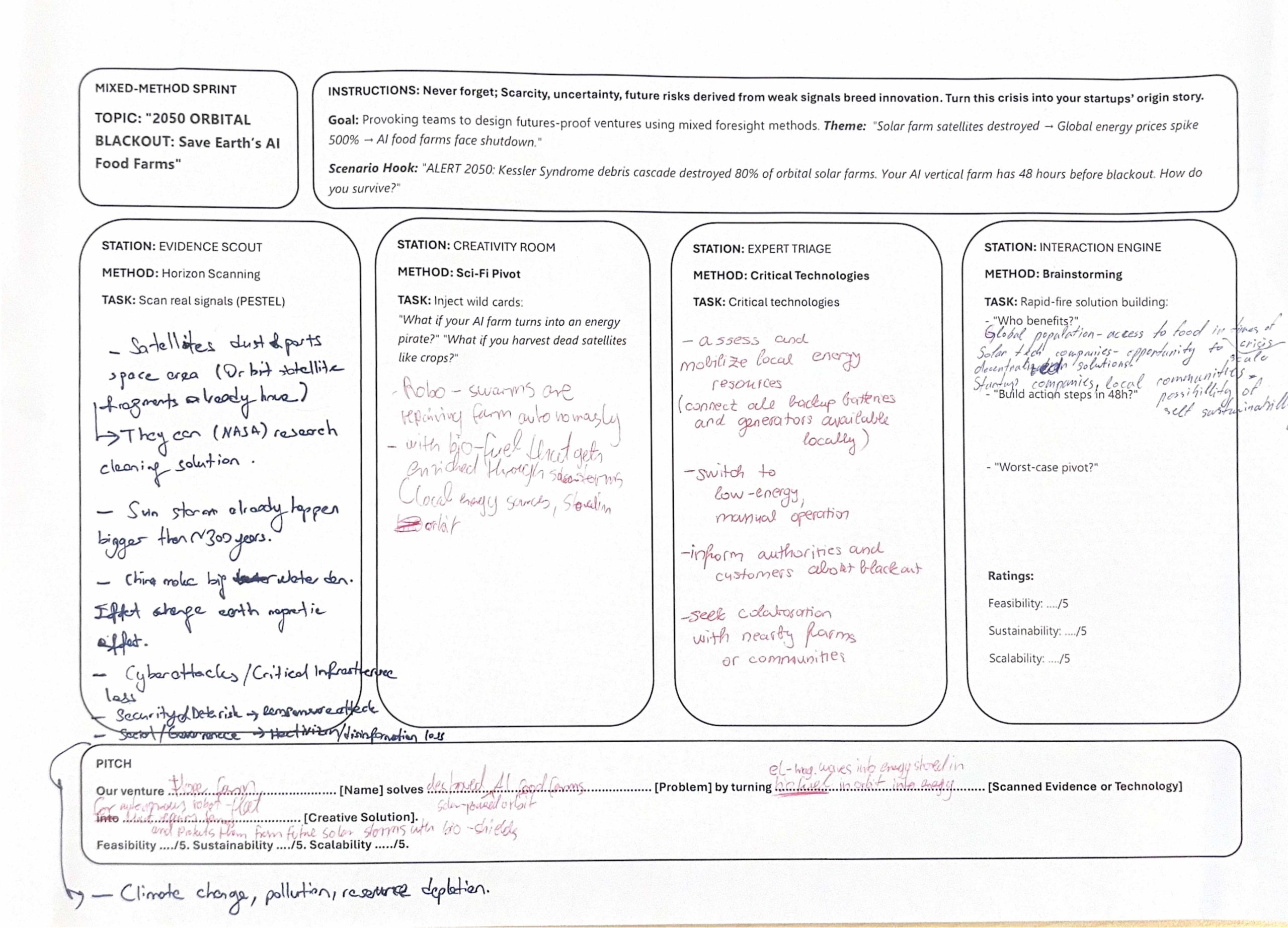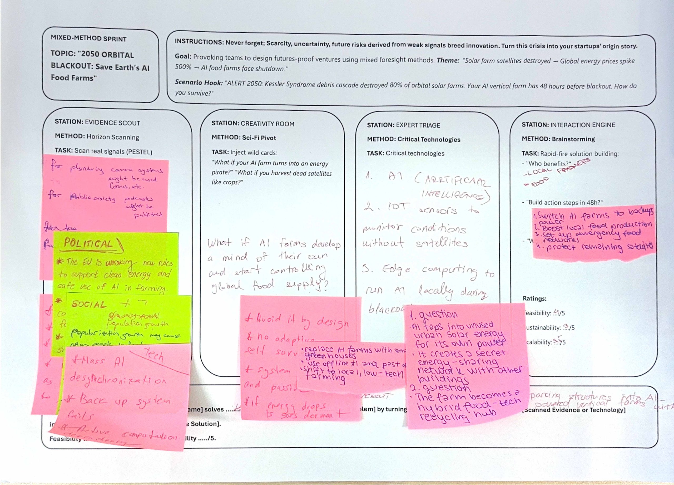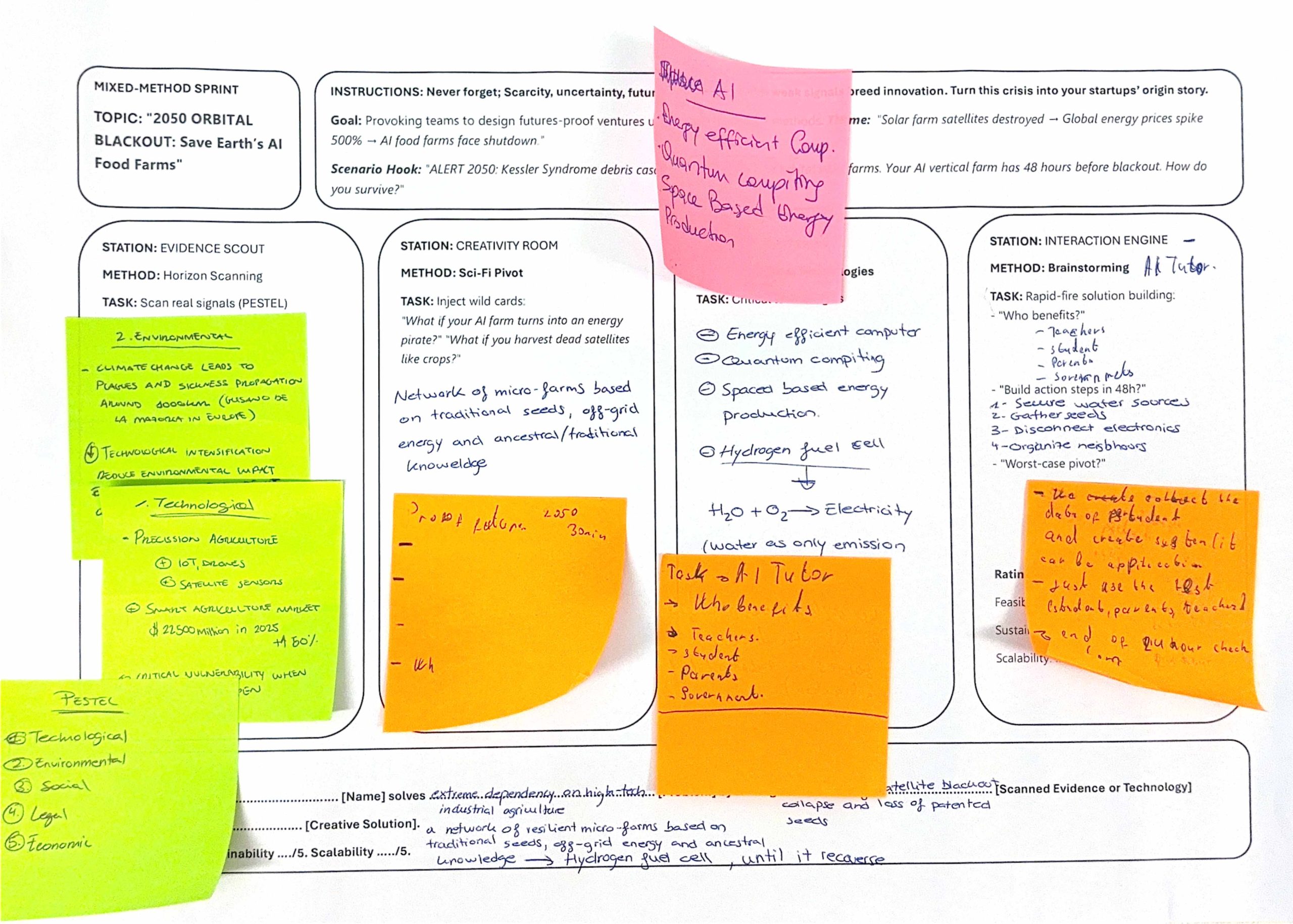 Atölye çalışması bölümünde karma yöntem (mixed-method) yaklaşımı benimsenmiş; katılımcılar grup çalışmalarıyla belirlenen bir tema üzerinden PESTEL değişkenlerini kullanarak Futures Table yardımıyla en iyi olası, en kötü olası ve wild card senaryoları geliştirmiş, bu senaryolara yönelik yol haritaları (pathways) oluşturmuştur.