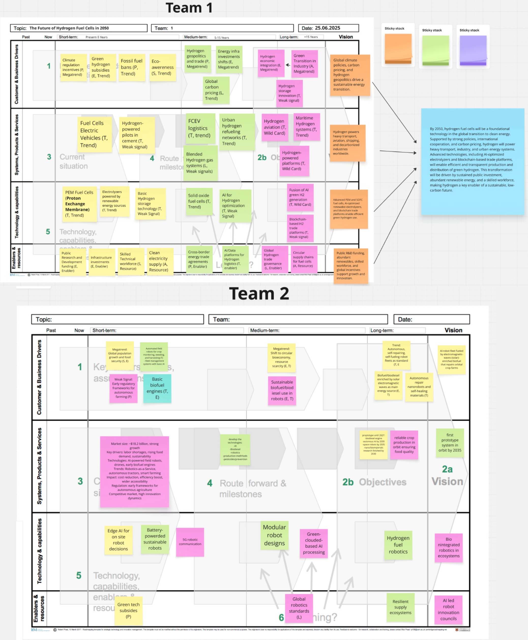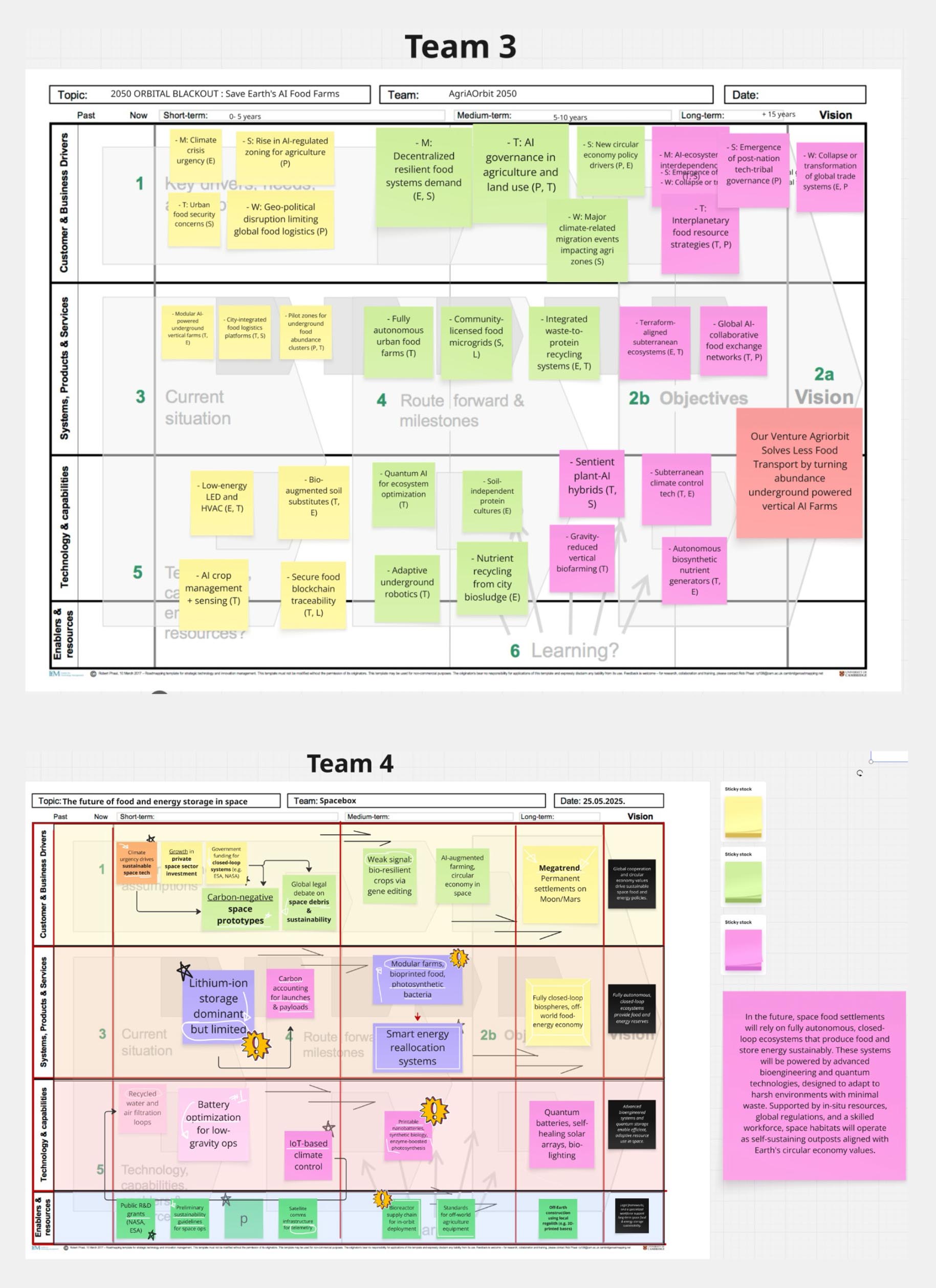 Atölye Çalışmaları bölümünde katılımcılar, üretken yapay zekâ araçlarını kullanarak seçtikleri yeşil veya dijital iş fikirleri için ufuk taraması yapmış; elde edilen çıktıları PESTEL çerçevesine göre megatrendler, trendler, zayıf sinyaller ve belirsiz yüksek etkili gelişmeler olarak sınıflandırarak yol haritası matrisine aktarmış ve sonuçları eleştirel biçimde değerlendirmiştir.